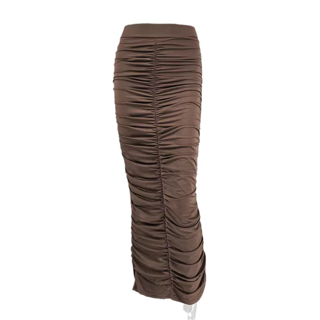 Elitee Women’s High-Waist Pleated Skirt – Stylish Medium-Length Polyester